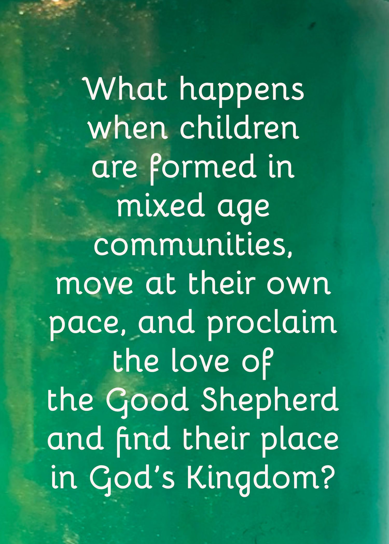 Sharing the capacity children have to listen, ponder, and share the mystery of our faith with families and faith communities through communal conversation, thoughtful materials, and responsive resources.