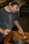 Taking the nippers hold the glass – carefully – and pinch with the nippers to remove tiny pieces of glass.