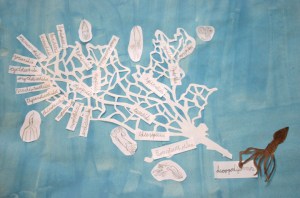 The squid are a part of kingdom Molluska class Cephlodia. Squid are mainly found in the order Teuthida. Their primary orders are Myosophina and Ogosophina. Only Cephlopoda can change color. Only Cephlopoda have closed circulatory systems. They have approximately 300 species. They only live in salt water. They are found in two ocean zones – euphotic through the disphotic zones – ranging from about 30 feet to 1000 feet. The squid can swim 25 body lengths per second. Squid are the fastest among the invertebrates. Their fins on the out side of the body help stabilize the squid. The squid have a funnel on their