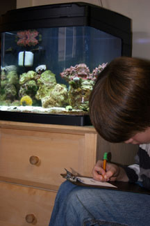 JV has undertaken a research book encompassing all the creatures in the tank. He has been forced to limit his research/rabbit trail time. He spent the first day making his book – blank. The second was spent sketching each creature from the tank. Then the book research began in earnest.