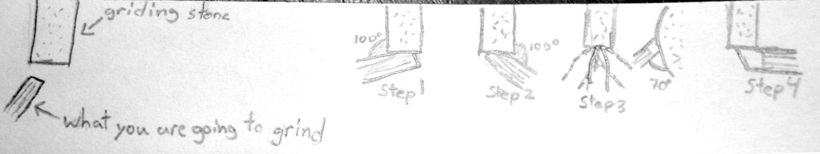 2. Reverse the angle to the opposite side of the tool holding it it an a 100* angle to the grinding stone.