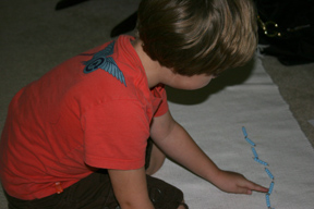 AR has continued to put her skeleton together. She spent time with Ms. Julie working out the names of the primary bones in it. AR has been attaching 20 gage wire that she has cut and hooked so she can hook all the pieces together. She adhered the wire to the plaster with duct tape (that shiny silver stuff). We’ve had an oweeee that AR has set with some more tape and wire.
