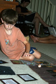 We laid out the 3’s multiples and 4’s multiples. We then created a Venn diagram and place all the 3’s multiples in “A” and all the 4’s into “B” – the multiples that are the same in both were placed in the Venn overlap. The older guys were all over this game. AR was all about figuring out the squares and cubes of the factors