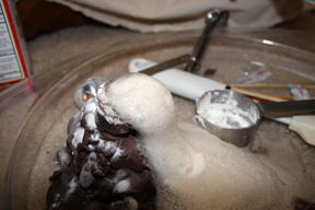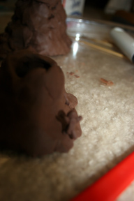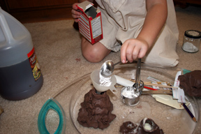 AR and JV have reached the cards for the demonstration of a volcano. The original Montessori lesson involved the use of noxious chemicals, so many years ago the old stand by of baking soda and vinegar became common. As much as real explosions would have been very cool, I was interested in the children being able to do the demonstration on their own.