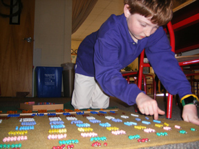 One of the anticipated lessons in the Montessori Elementary is the presentation of the decanomial. It is a giant square (literally and figuratively) and is laid out in beads bars. This is most often accomplished by third year students with legions of adoring first years lending hands with the beads.