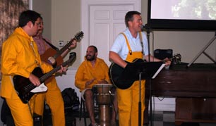 They went down to Wal-Mart and acquired three Gordon Fisherman rain outfits ($7.95 each) and declared that they had tried out for ESPN 12’s reality series. They called their show The Safest Catch and never used hooks (dangerous). Each night they proceeded to tell a few fish related knock-knock jokes and because they all knew each other, ad lib where it fit in. Then they got down to business and played their set.