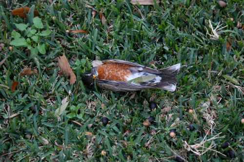 DW headed out to they yard for free time (also known as recess) and discovered this sad robin.