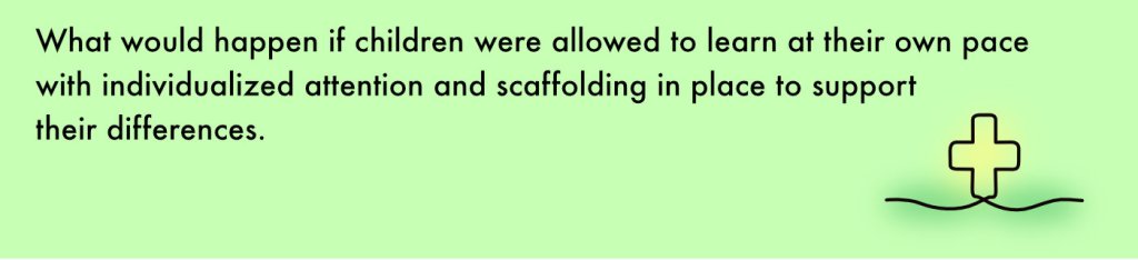 By centering the child, the innate needs of the child are spoken to in a slow-paced, individualized way which allows for adaptation for cultural, emotional, physical, and neurological diversity.